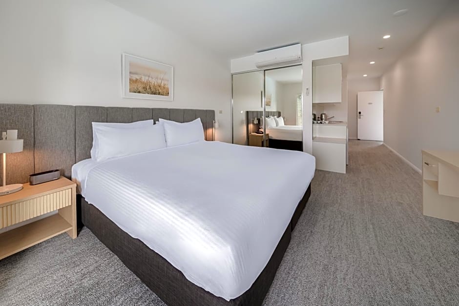 Studio Lagoon is 355 square feet and includes either a king-size bed 150-183 width or 2 single beds 80-130 width.